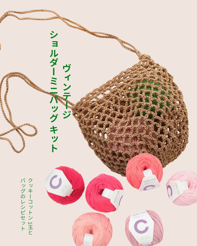 クッキーコットンで作るショルダーバッグキット|1玉とレシピ付き|選べる36カラー|編み物キット