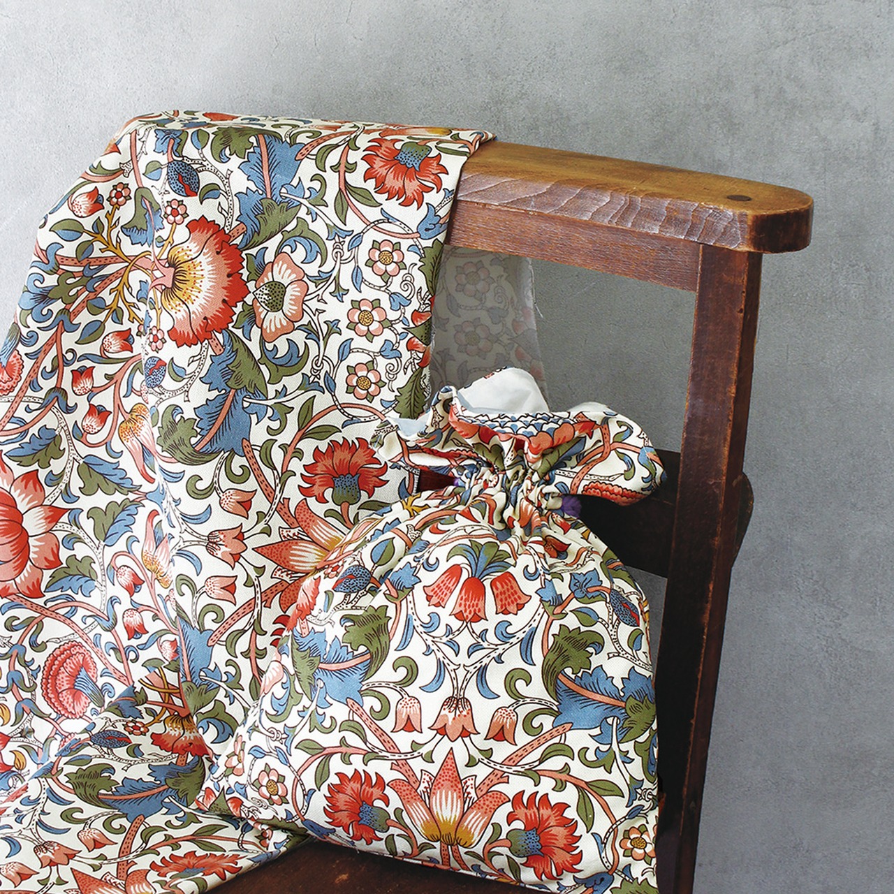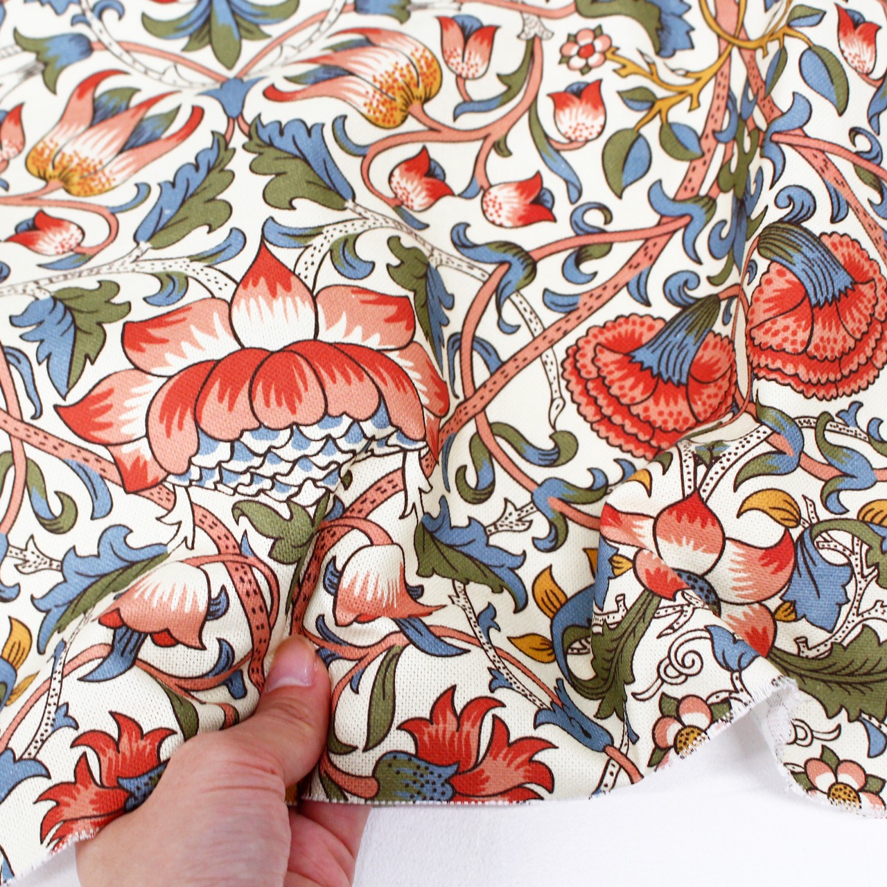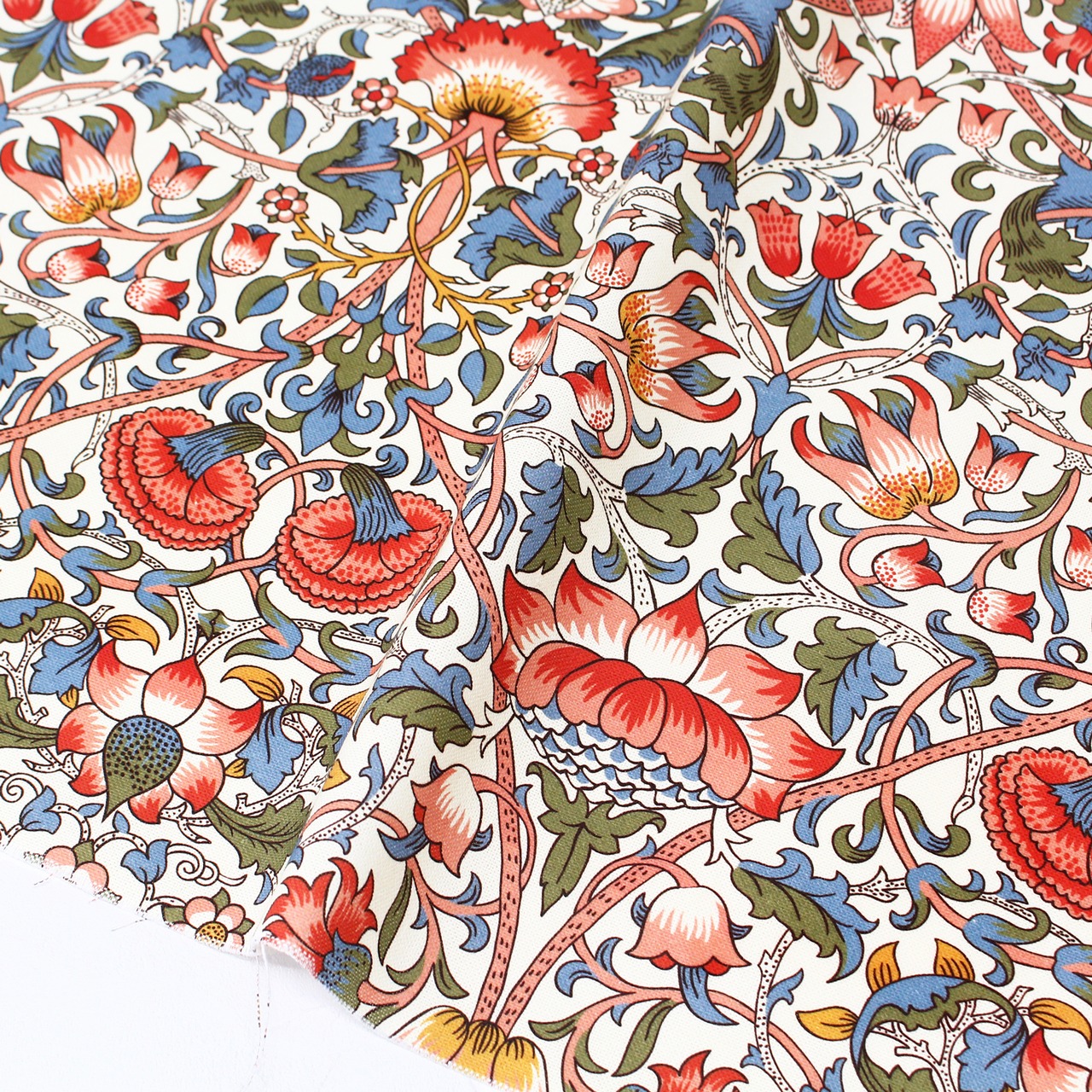 ウィリアムモリス・オックス地 スペイン生地 白地×赤い花