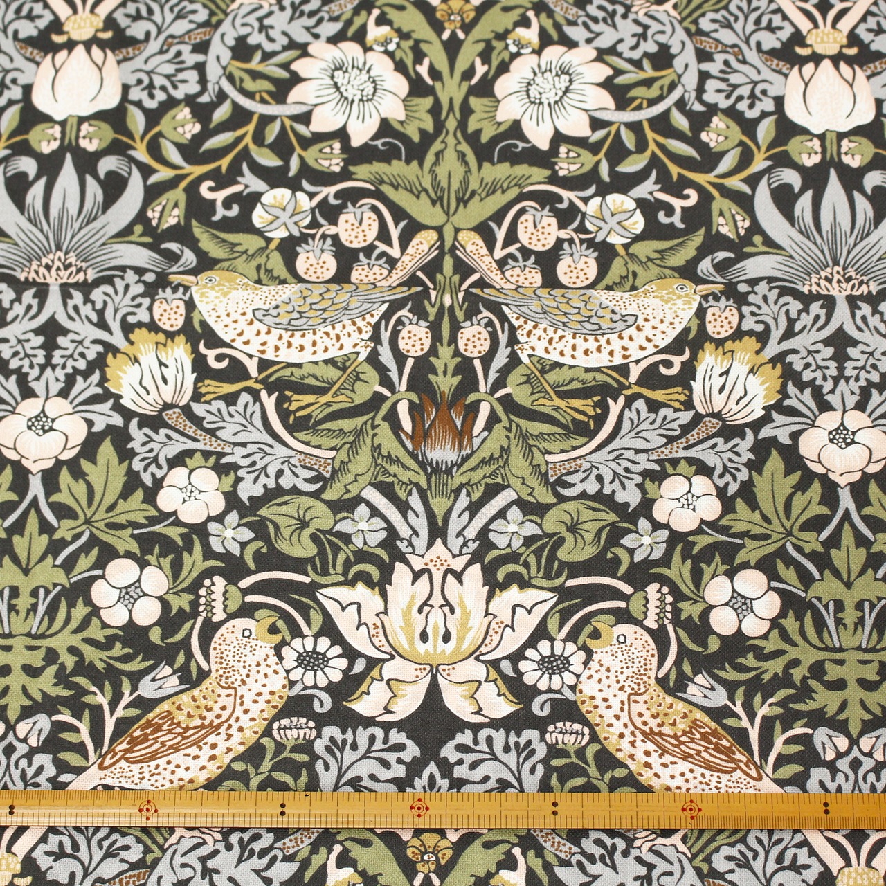 ウィリアムモリス・オックス地 スペイン生地 グリーン×鳥たち