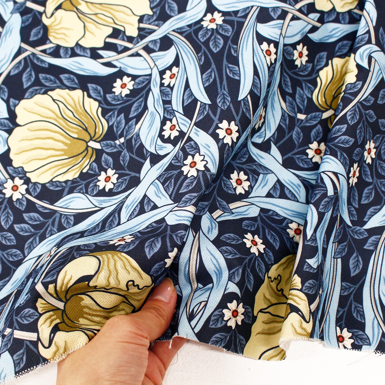 ウィリアムモリス・オックス地 スペイン生地 ブルー地×小花