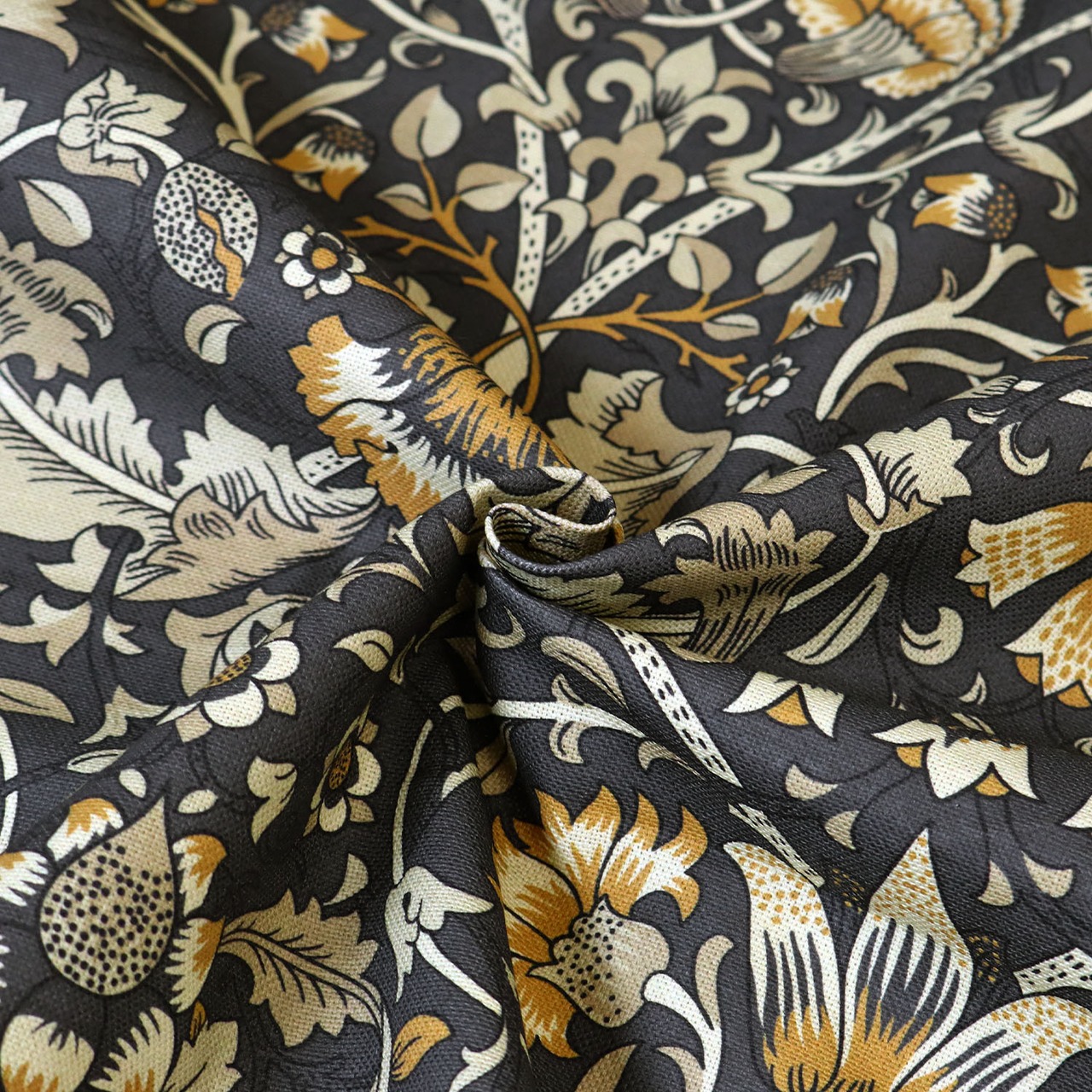 ウィリアムモリス・オックス地 スペイン生地 グレー地×くすみブラウン花