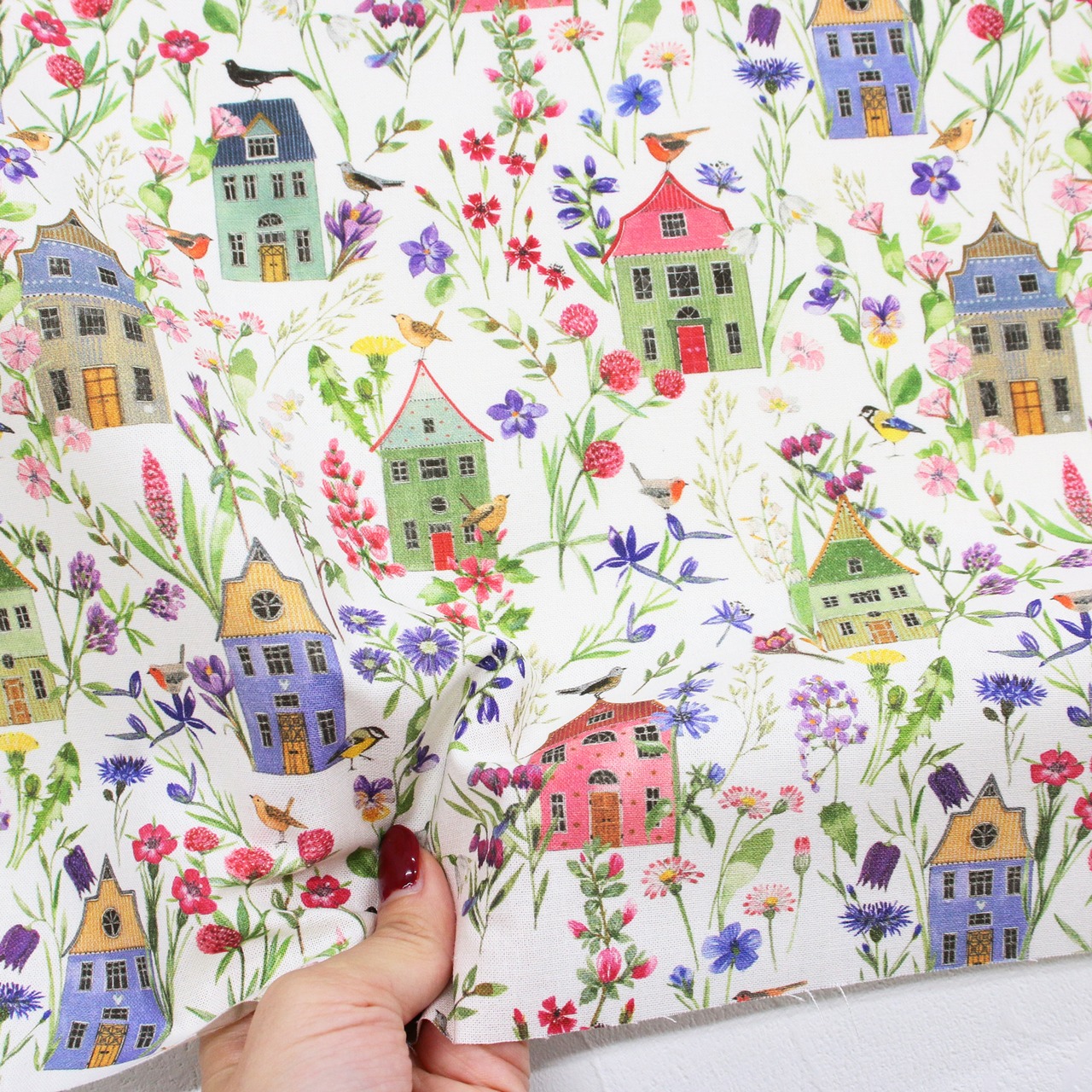 50cm ドイツ生地 お花に囲まれたお家 【acufactum】