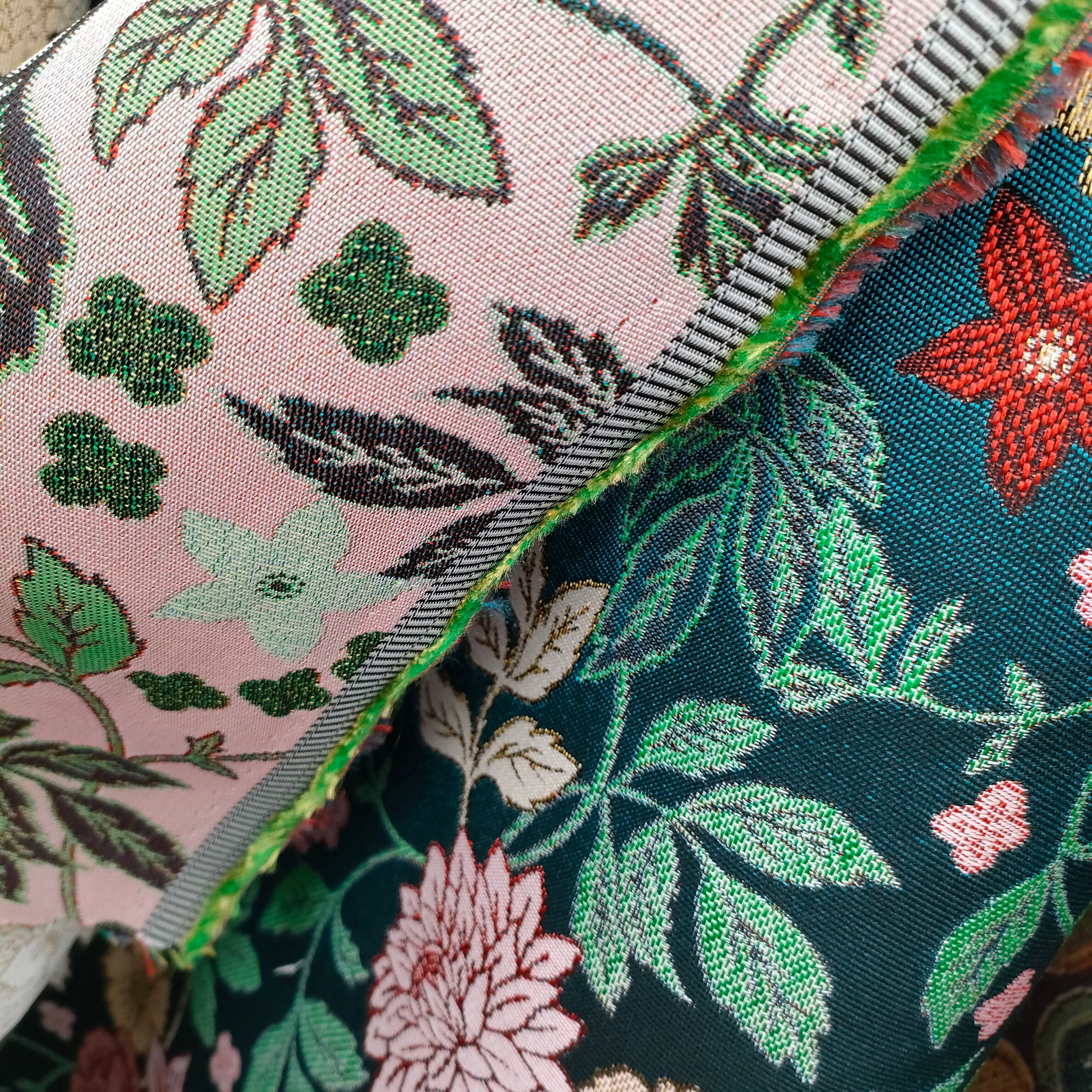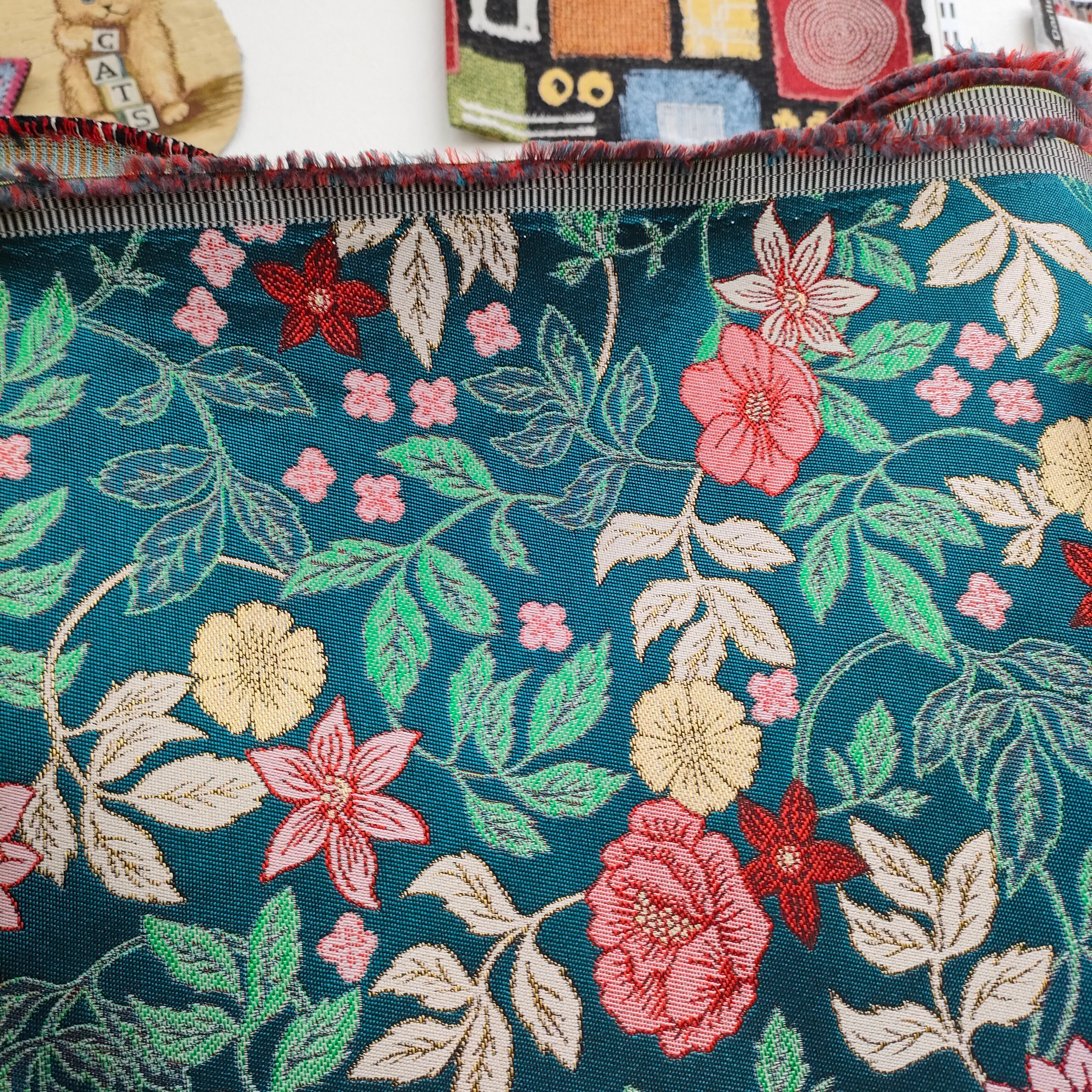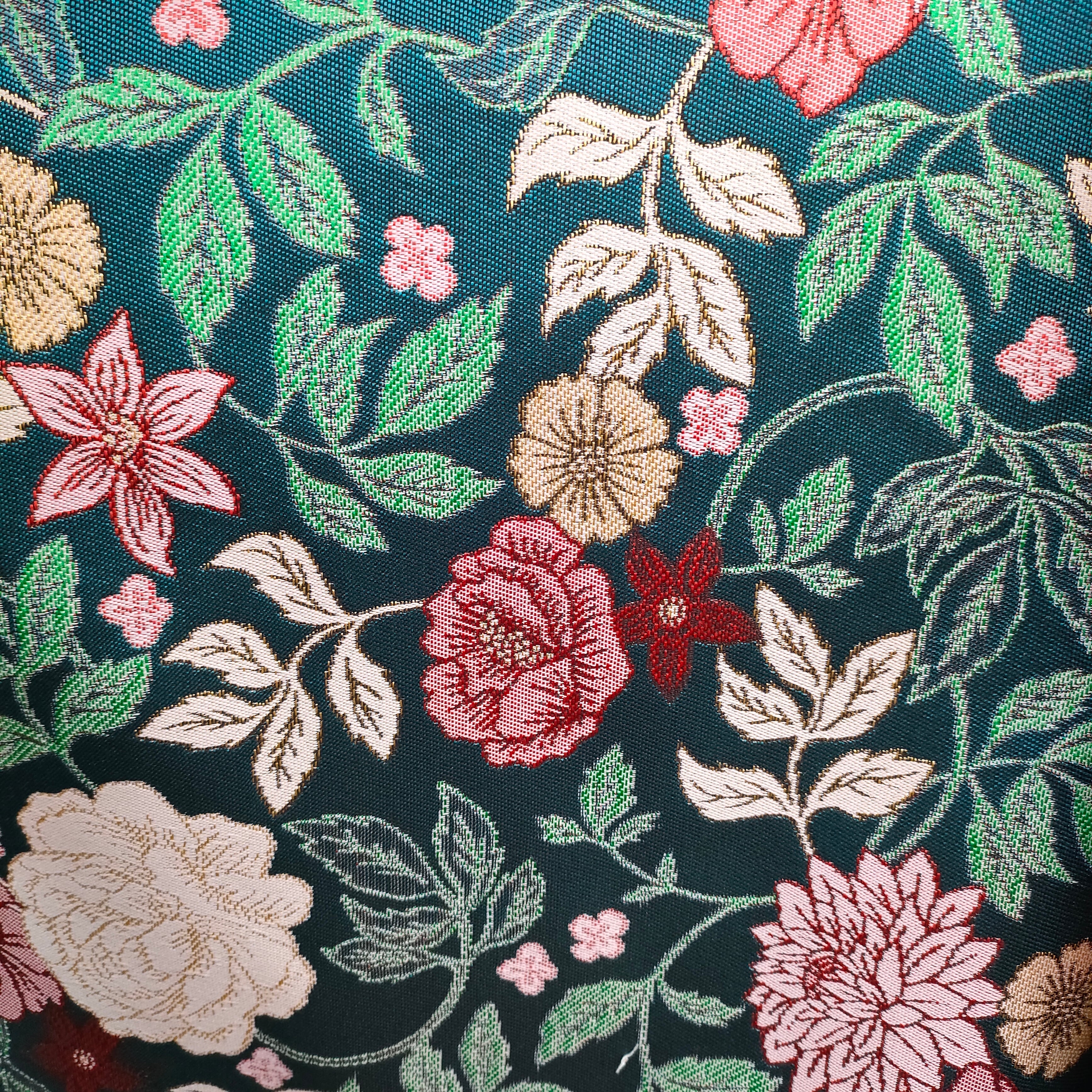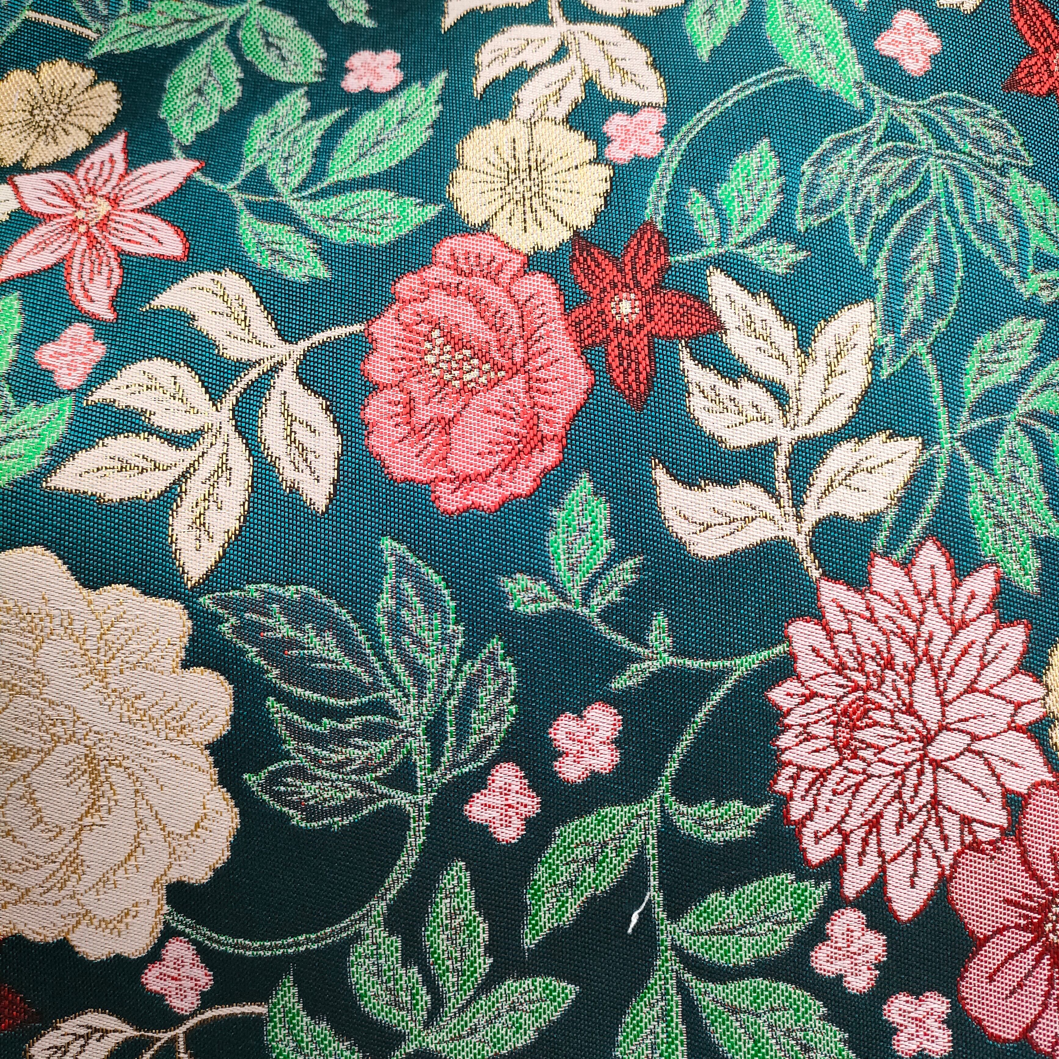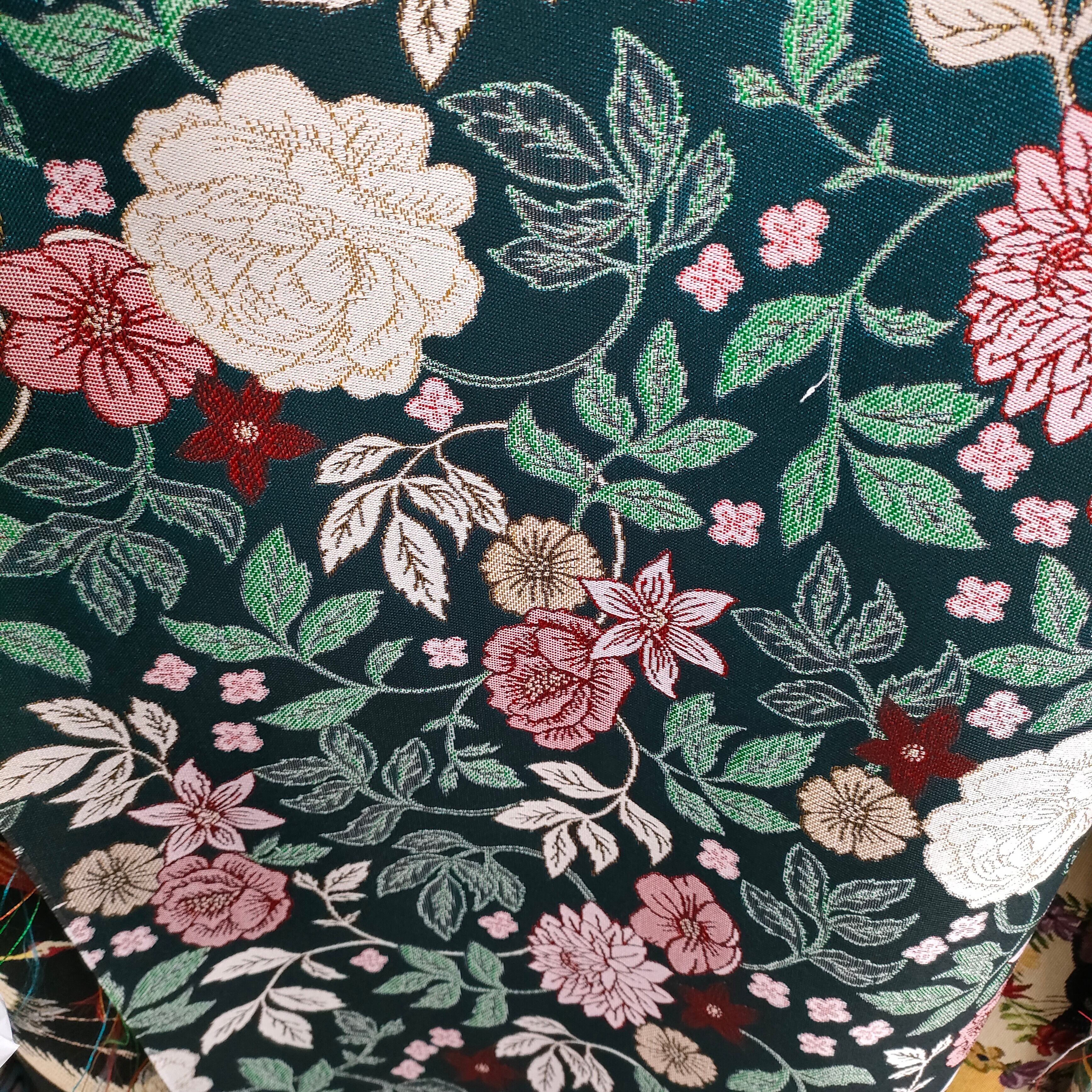 ゴブラン織り モスグリーン地 赤やピンクの花々
