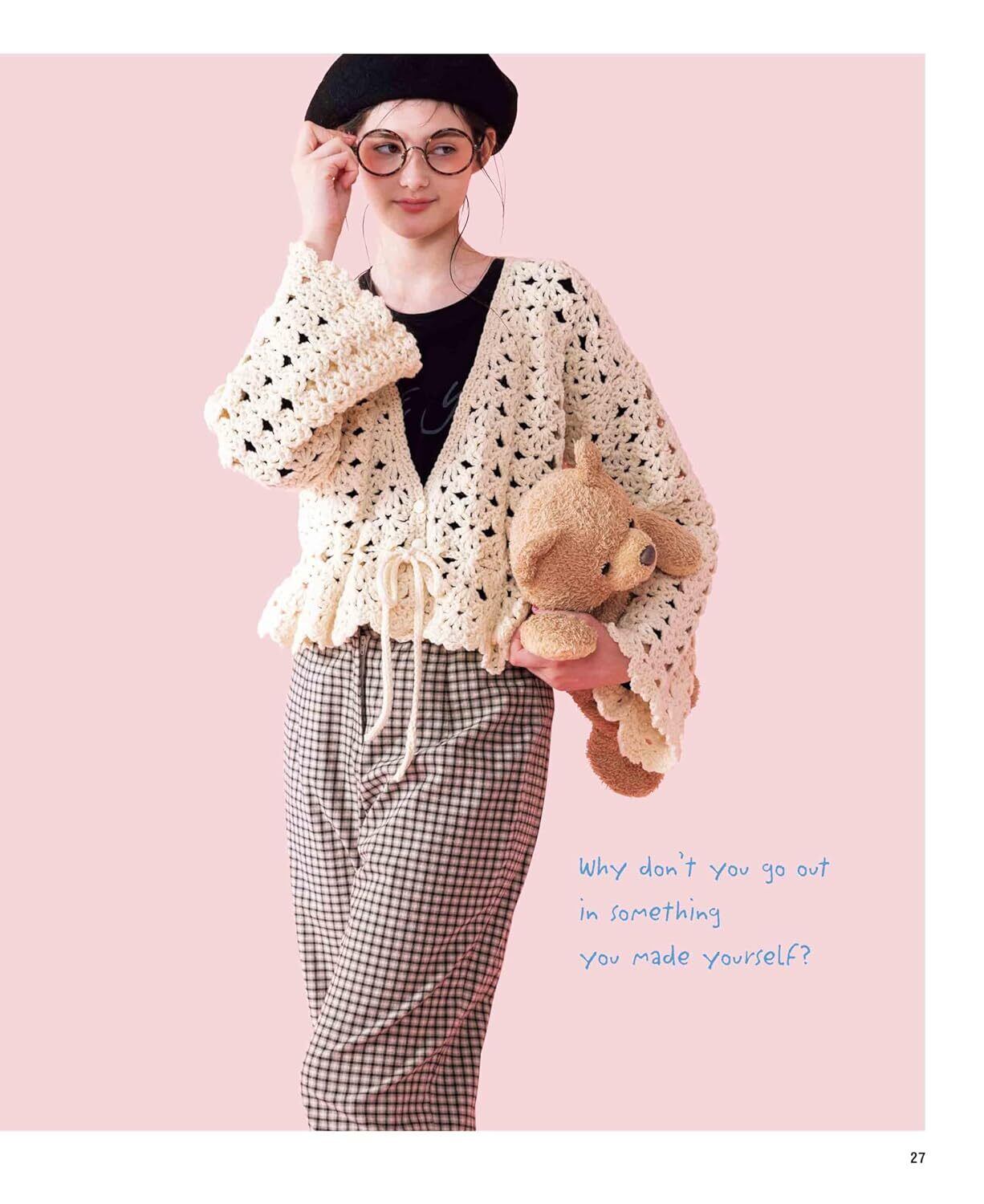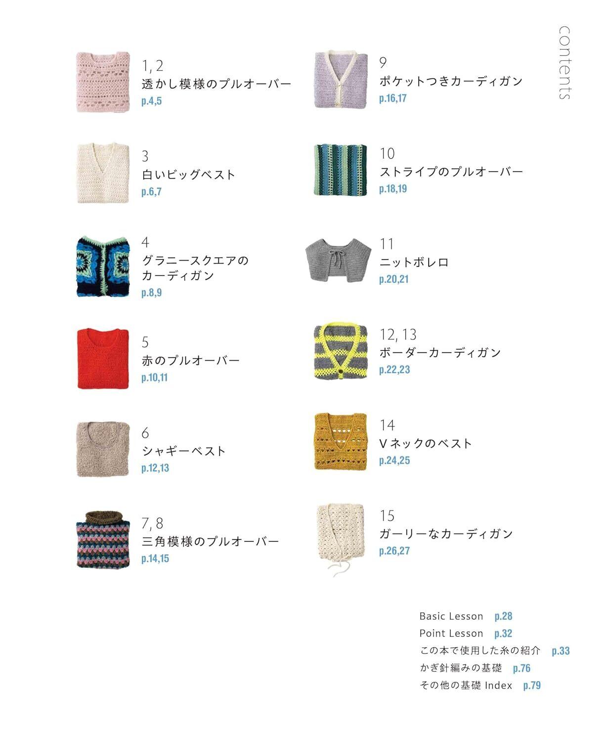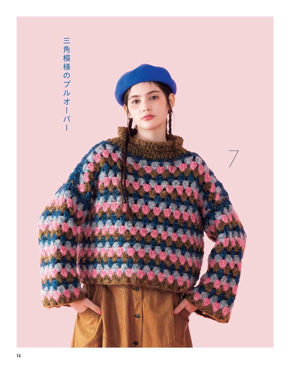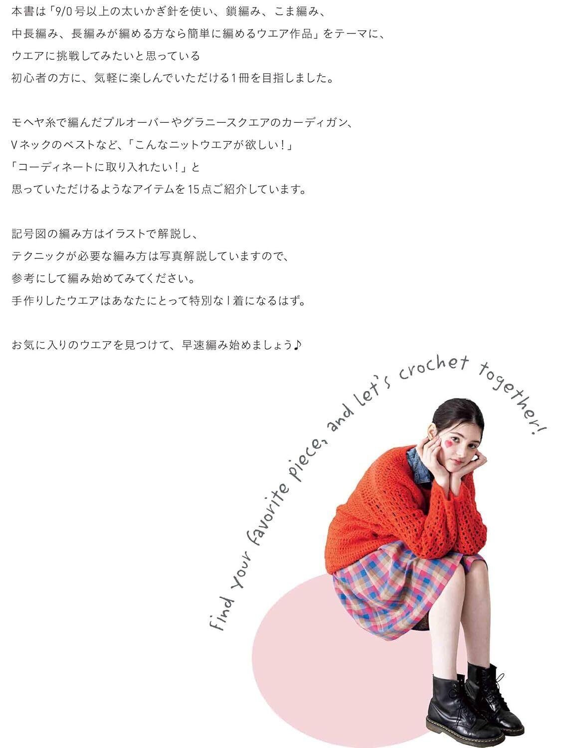 かぎ針編み初心者の方も楽しく編める、9/0号以上の太い針と太糸でざくざく編んで完成するウエアの作品集。