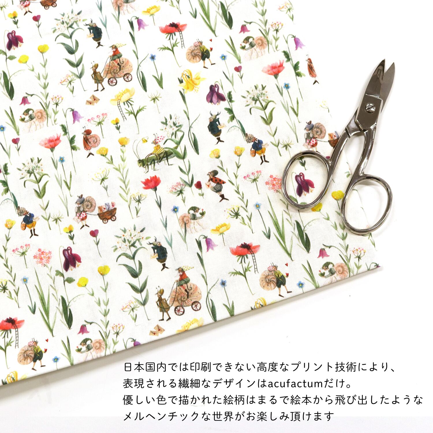 50cm ドイツ生地 妖精とお花たち 【acufactum】