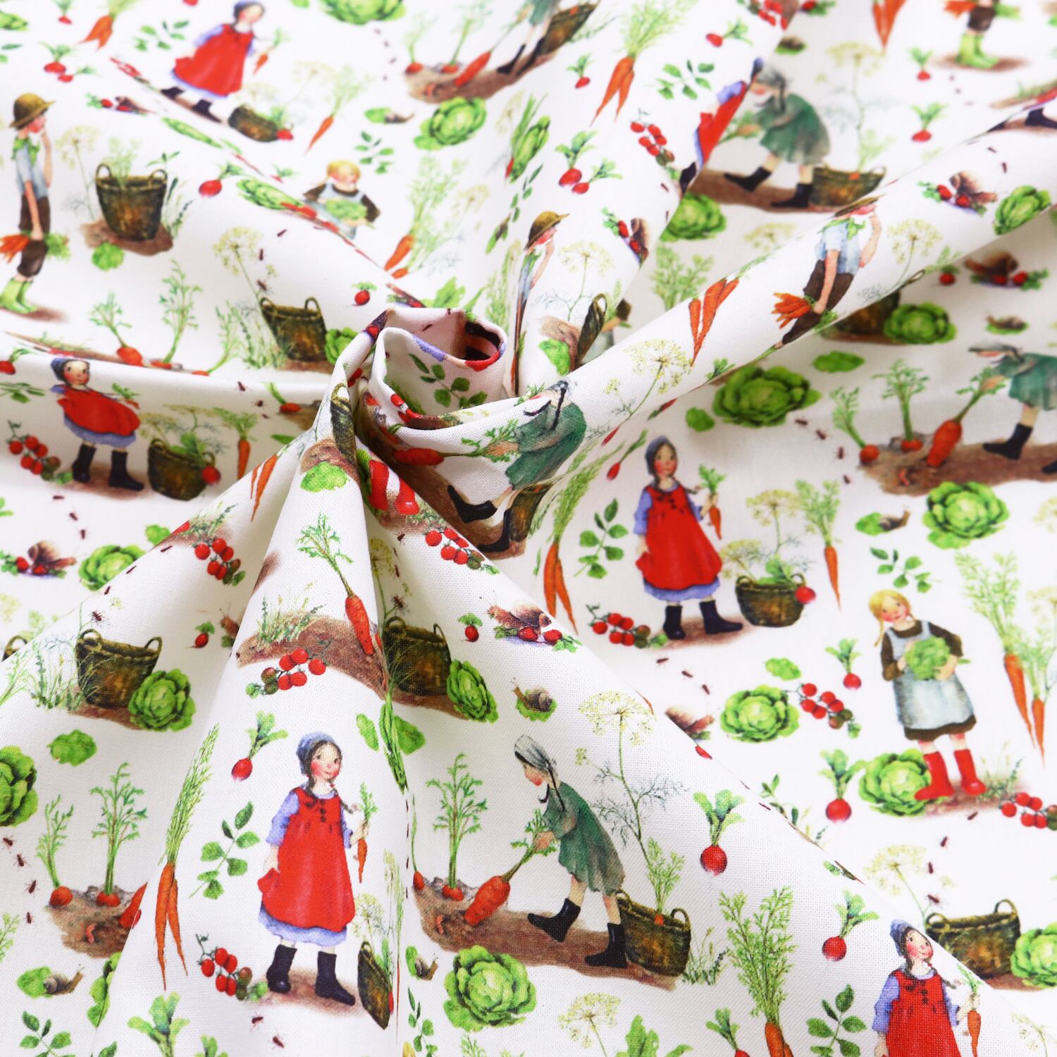 50cm ドイツ生地 キャベツ畑でお手伝いする女の子 【acufactum】
