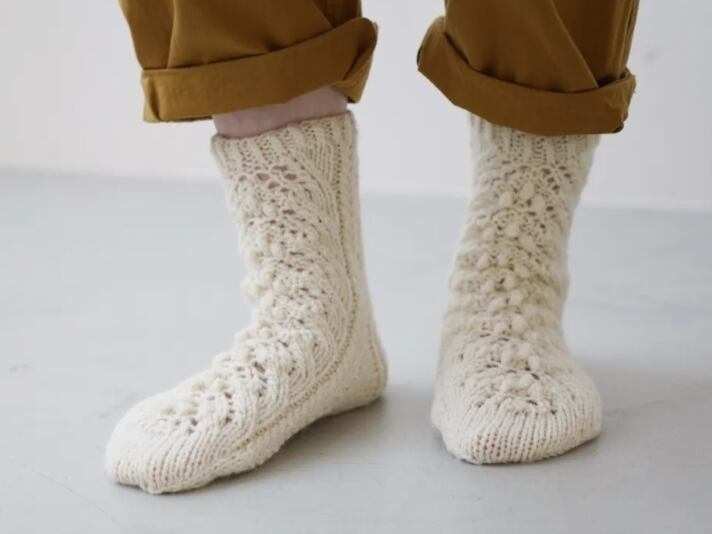 【DARUMA チャビオットウール使用】おうちケーブルソックス編み物キット|毛糸+レシピ付