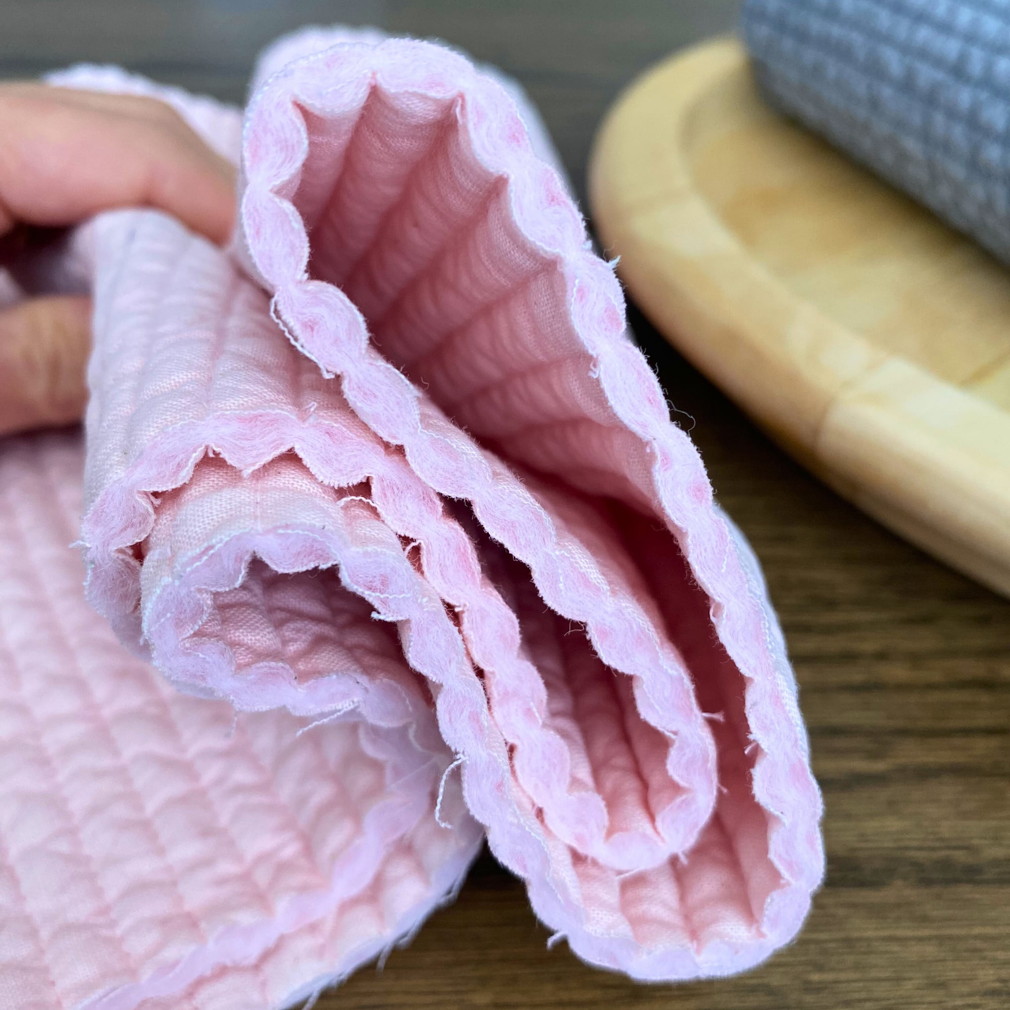 やわらかく弾力のある中綿入りキルティング。