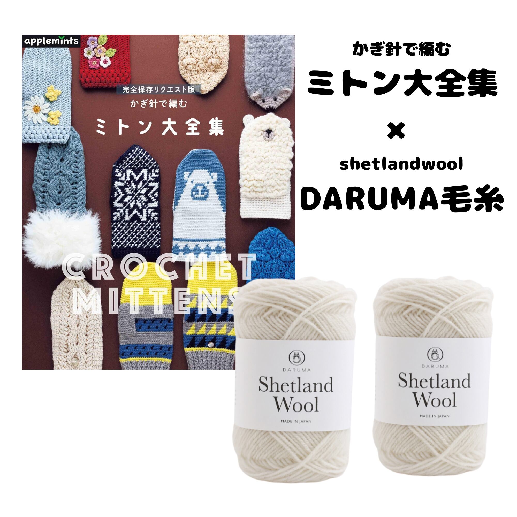 かぎ針で編むミトンキット|ミトン大全集掲載デザイン|DARUMAシェットランドウール使用