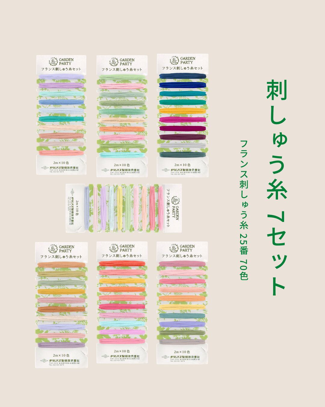 セット内容:25番 刺しゅう糸 各2m×10色×7個