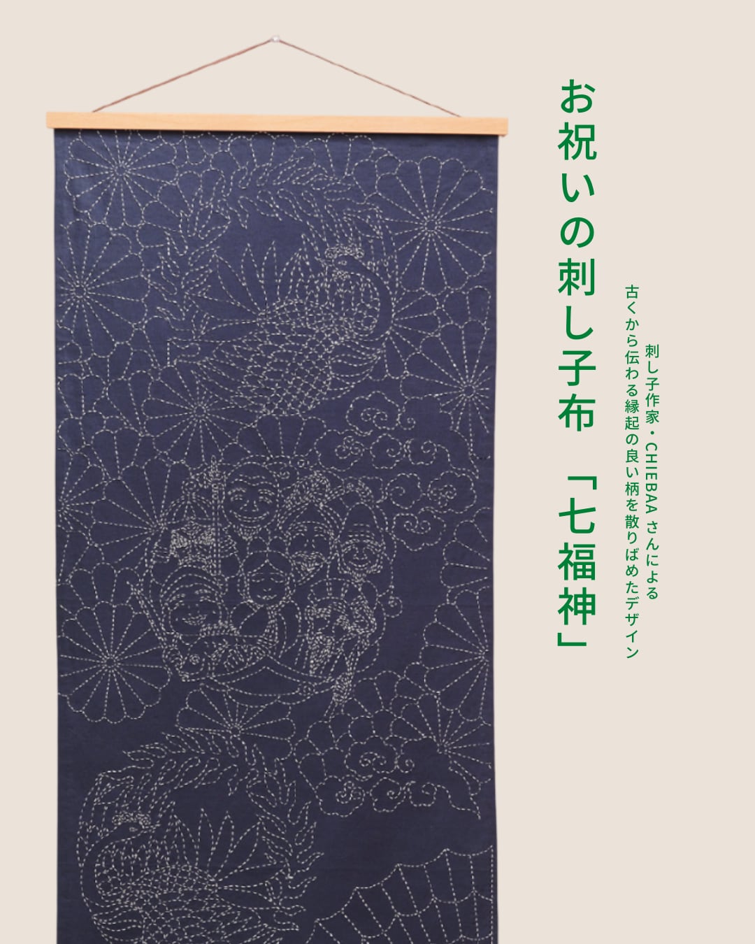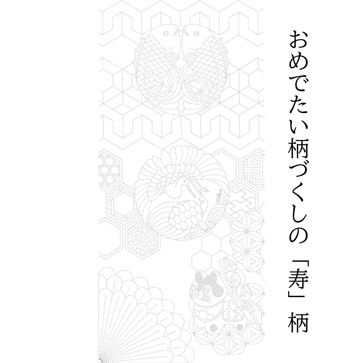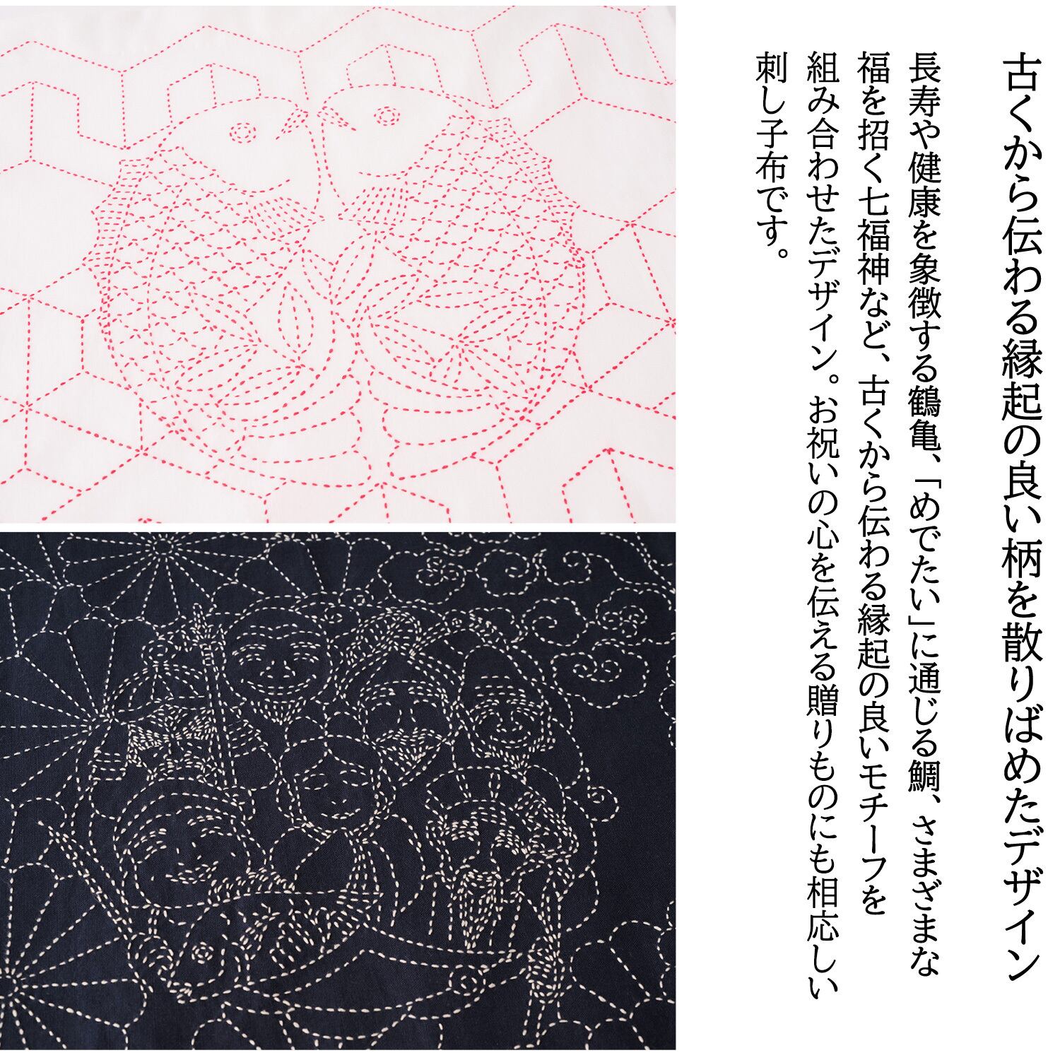 chiebaa|お祝いの刺し子布 「寿」「七福神」|伝統柄|縁起良い柄|ハンドメイドに|刺し子 キット|2パターン