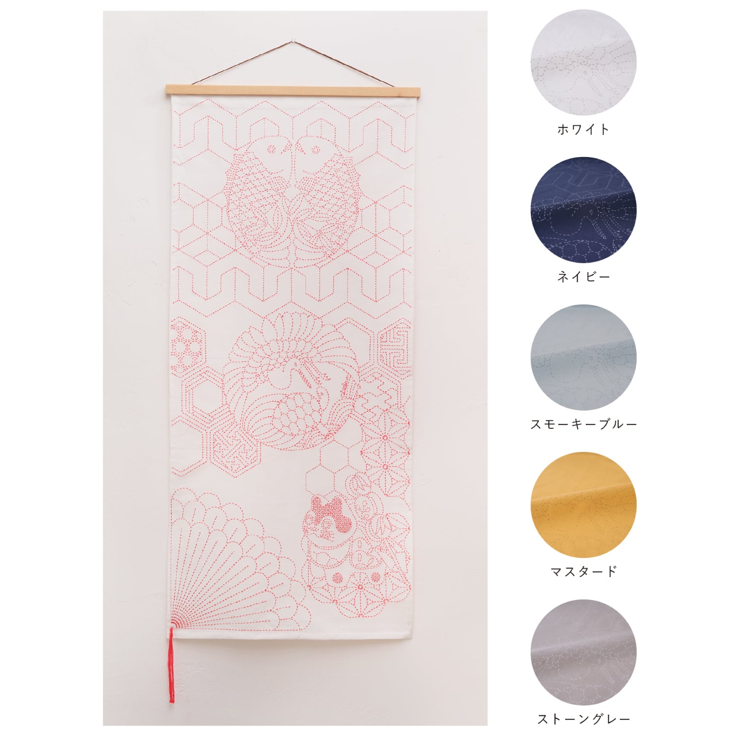 晴れやかな刺し子柄に房をあしらうことで