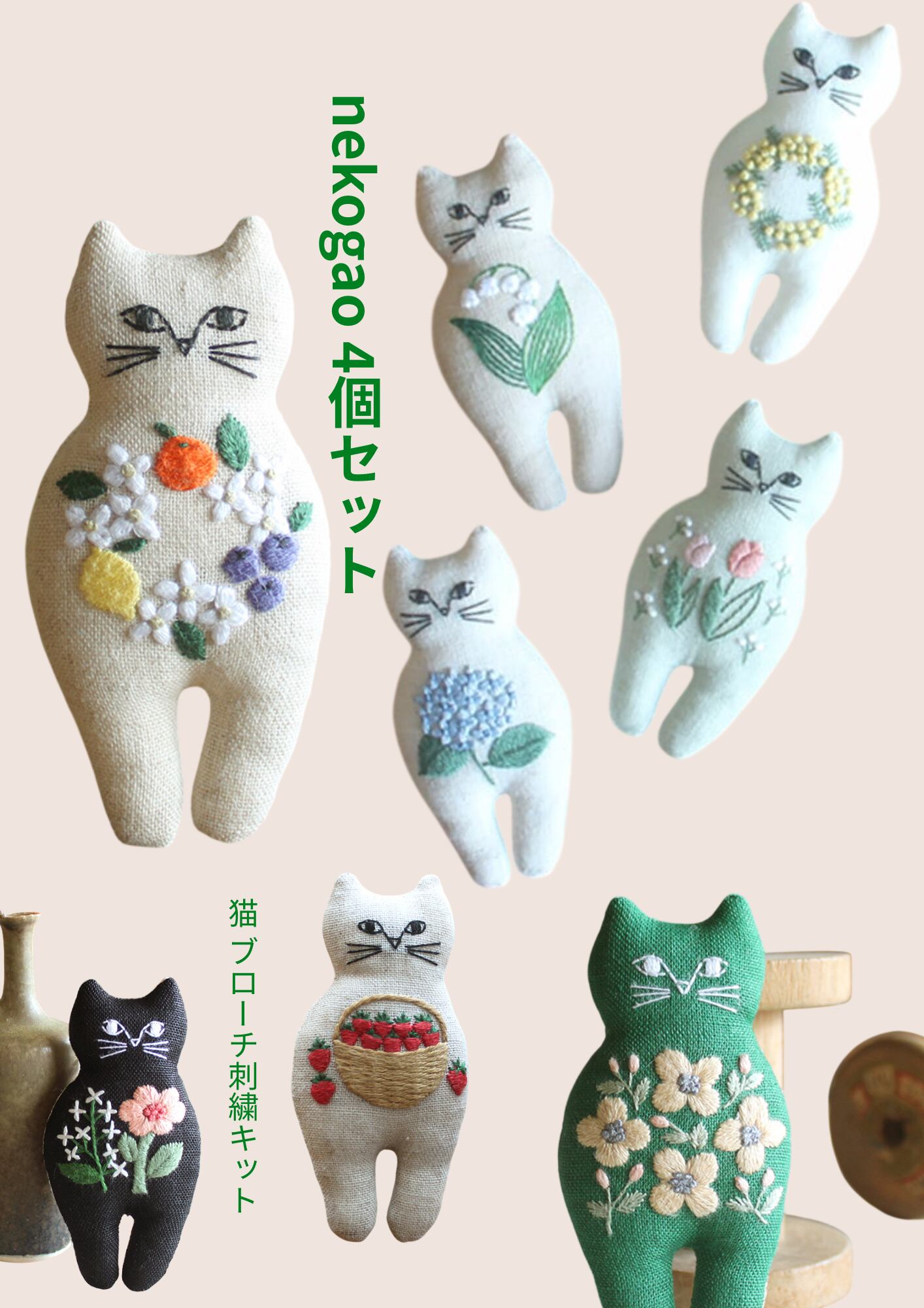 nekogao|猫 刺繍キット 4個セット|ハンドメイド ブローチキット|花束の刺繍|初心者OK|選べる2パターン
