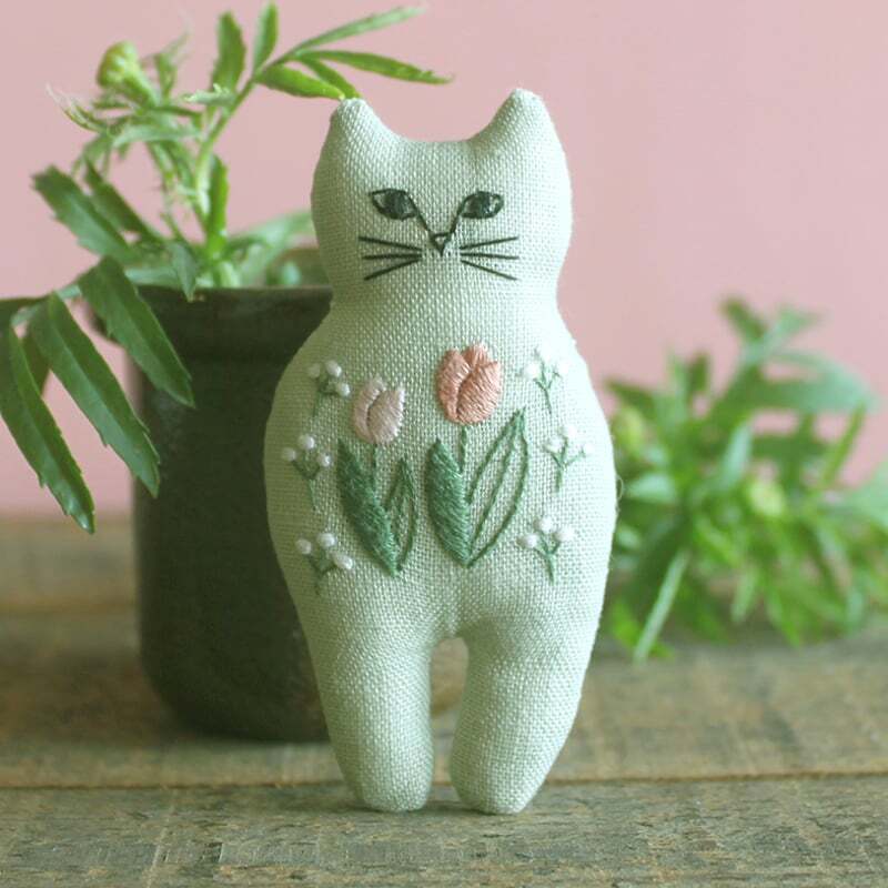 初心者向けのかわいい猫ちゃん刺繍キットです。