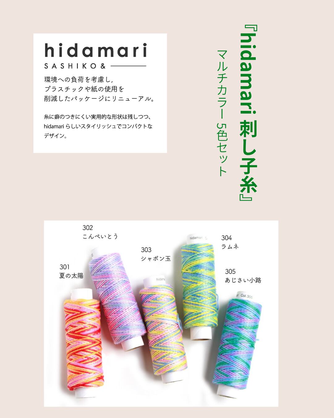 コスモ 刺し子糸 マルチカラー - hidamari - 5本セット