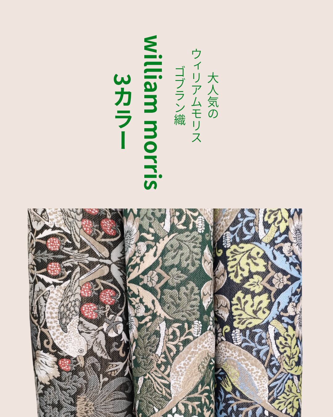 ゴブラン織|いちご泥棒|william morrisウィリアムモリス|選べる3カラー|ハンドメイド
