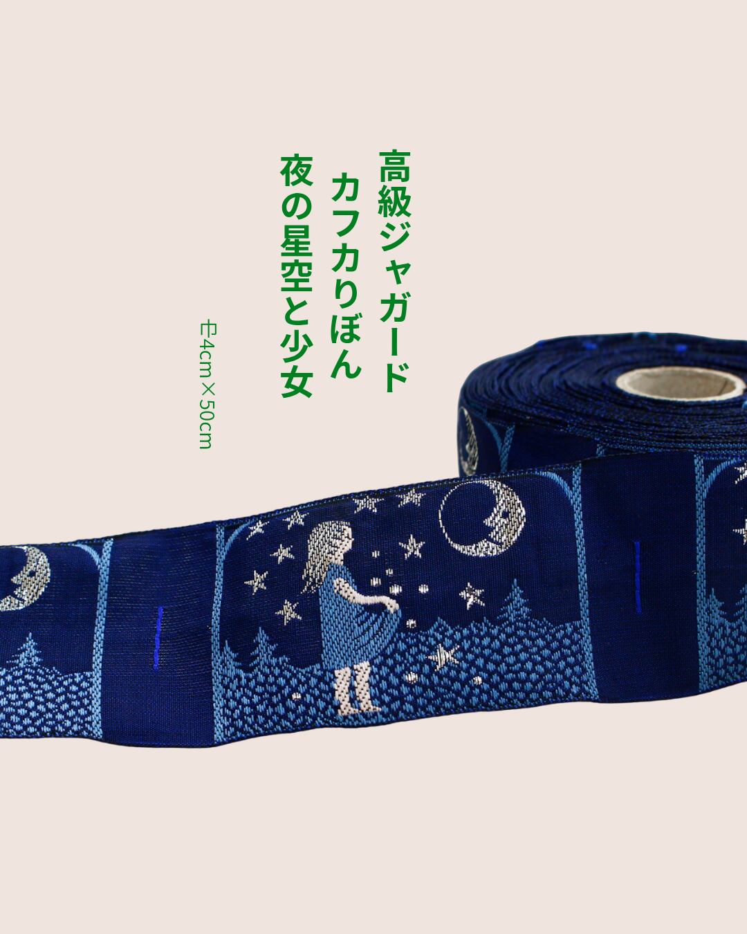 高級ジャガード|カフカりぼん 夜の星空と少女|巾4cm×50cm
