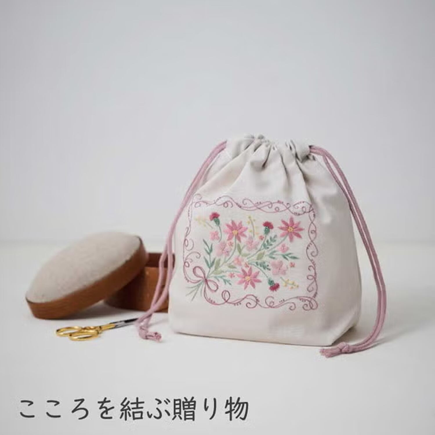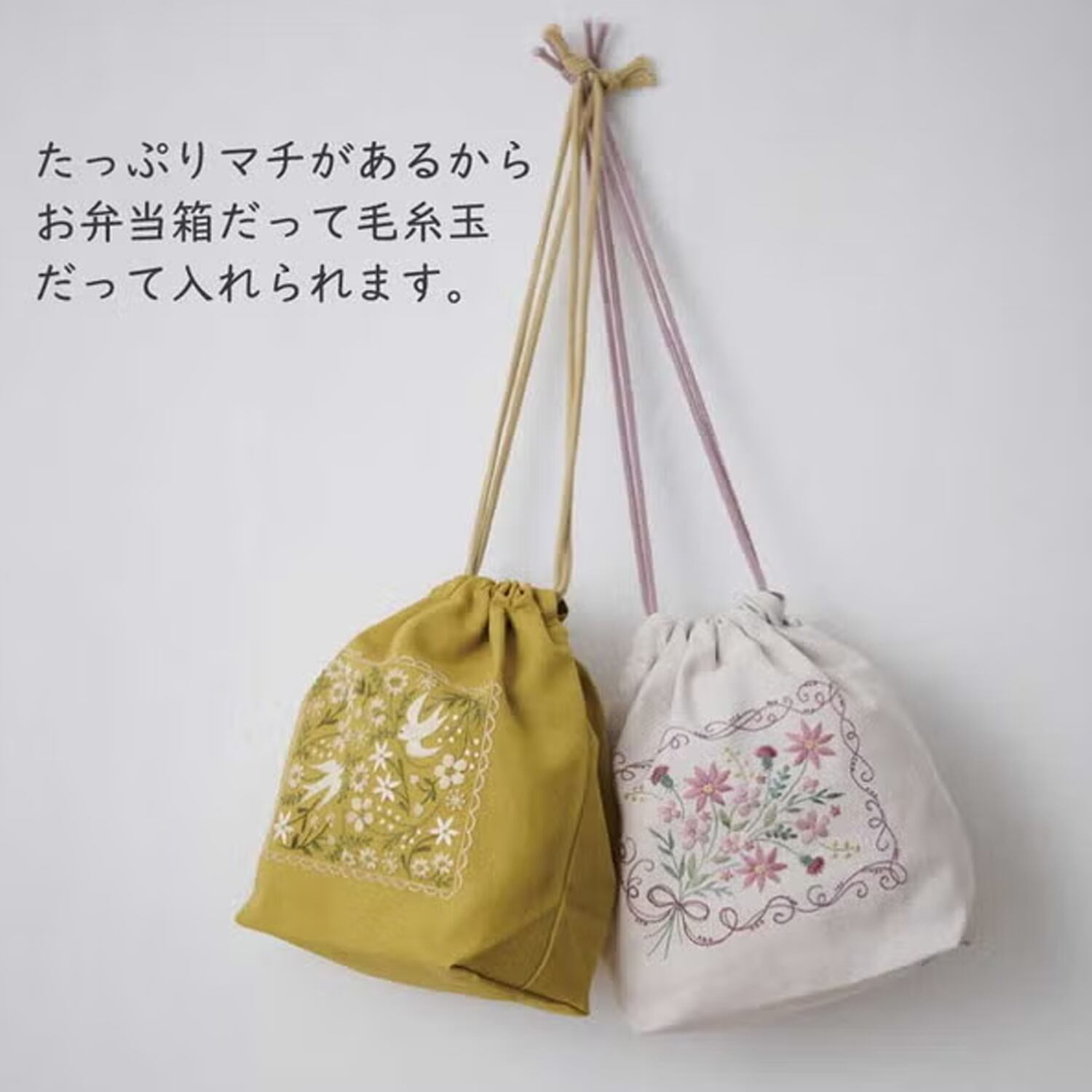 アトリエドノラ|刺繍作成キット|マチ付き巾着キット|縫製済み|選べる2パターン