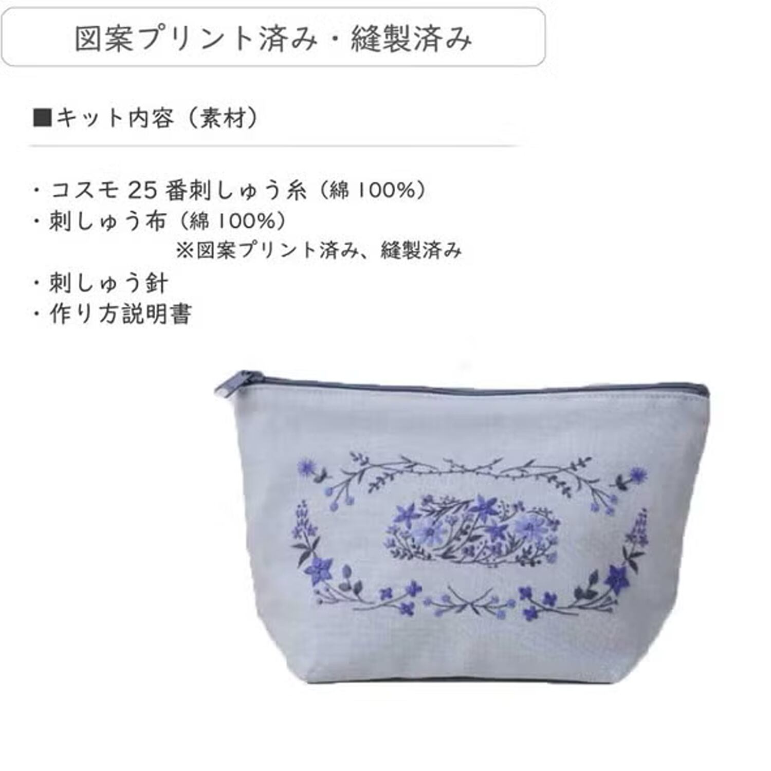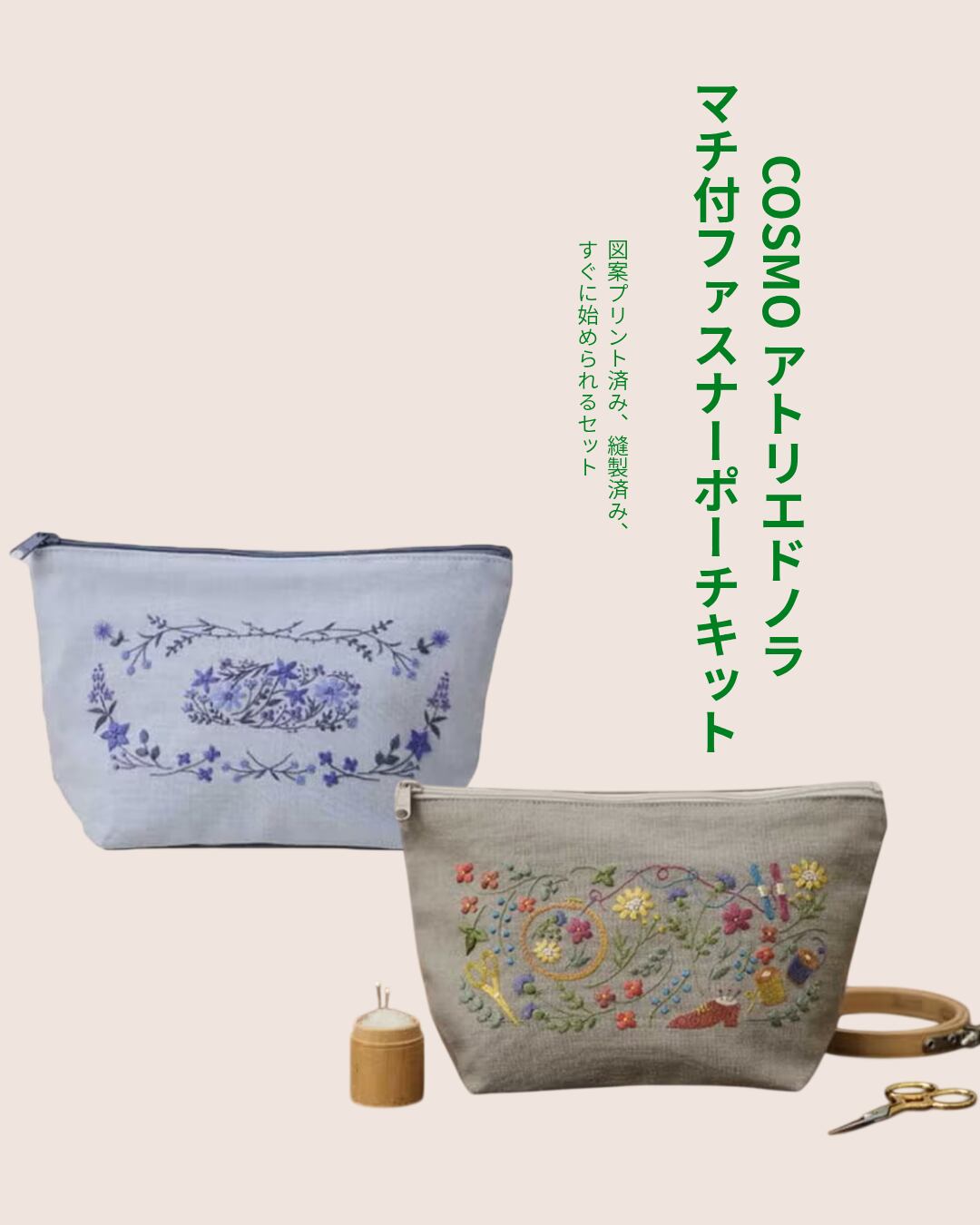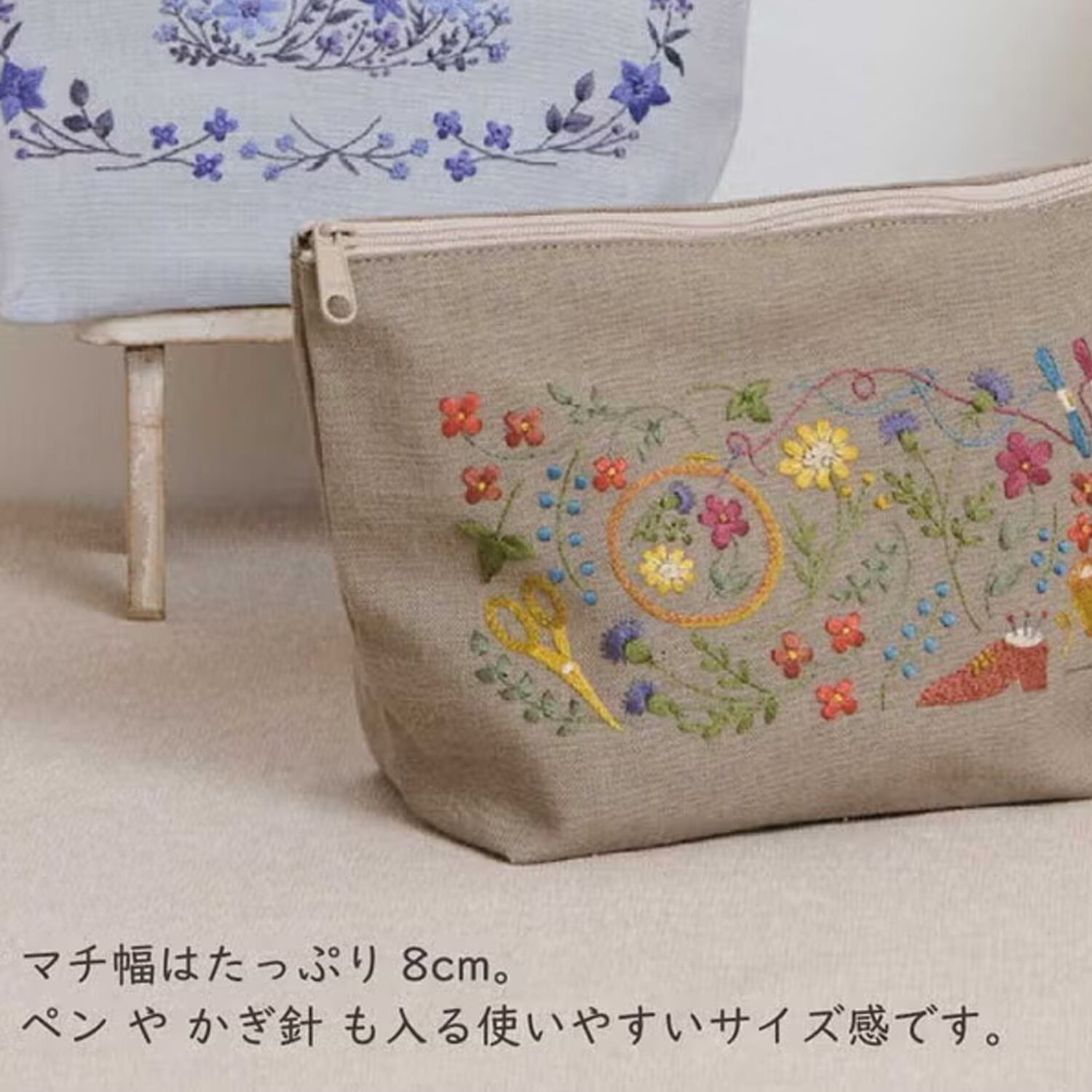 アトリエドノラ|刺繍作成キット|マチ付きポーチ|縫製済み|選べる2パターン