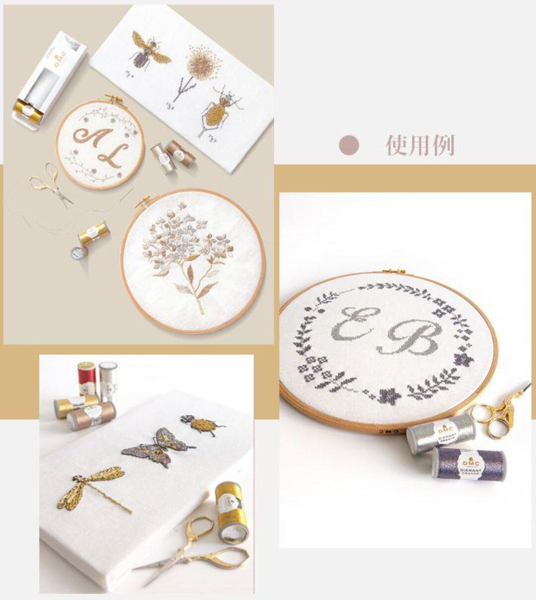 DMC Mouliné Spécial (25番糸) 4本取りと同様の太さで、これまでのディアマントの約2倍ながら同一の刺し心地、美しさ、特徴を備え、さらに作品に立体感を与え奥深い光を放ちます。